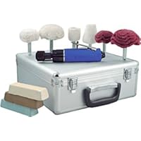 The Astro Pneumatic polishing kit with air buffer is designed for restoring aluminum and magnesium rims, engine parts, motorcycle parts and plastics. Speed (RPM): 0 - 3,000, Pad Diameter (in.): Varies, Spindle Size (in.): Varies, Pads Included (qty.): 6 separate buffs, 3 different rouges, Case Included: Yes